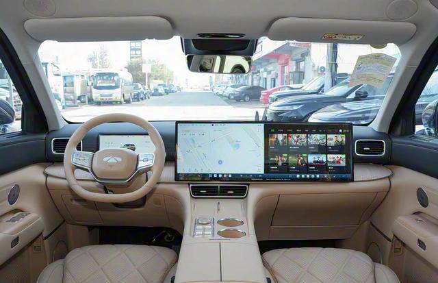 进入车内,风云T11以科技感与舒适性为核心,打造全场景豪华座舱。中控台最引人注目的是全系标配的30寸6K贯穿式大屏,左侧负责中控功能,右侧为副驾专属娱乐区,支持分屏操作,主驾导航时副驾可同步观看影视,配合蓝牙耳机连接不干扰驾驶。中控台与车门把手处采用木纹饰板与黑白拼色软质材质组合,温馨感与质感并存;常用功能区配备精致水晶旋钮与拨杆,触感极佳,提升操作仪式感。3120mm超长轴距构建越级乘坐体验,采用2+2+2六座布局,每排都有针对性舒适配置。前排座椅支持12向电动调节,配备加热、通风、按摩功能及电动腰托,无论何种身材都能找到舒适坐姿,长途驾驶时按摩功能可有效缓解疲劳。